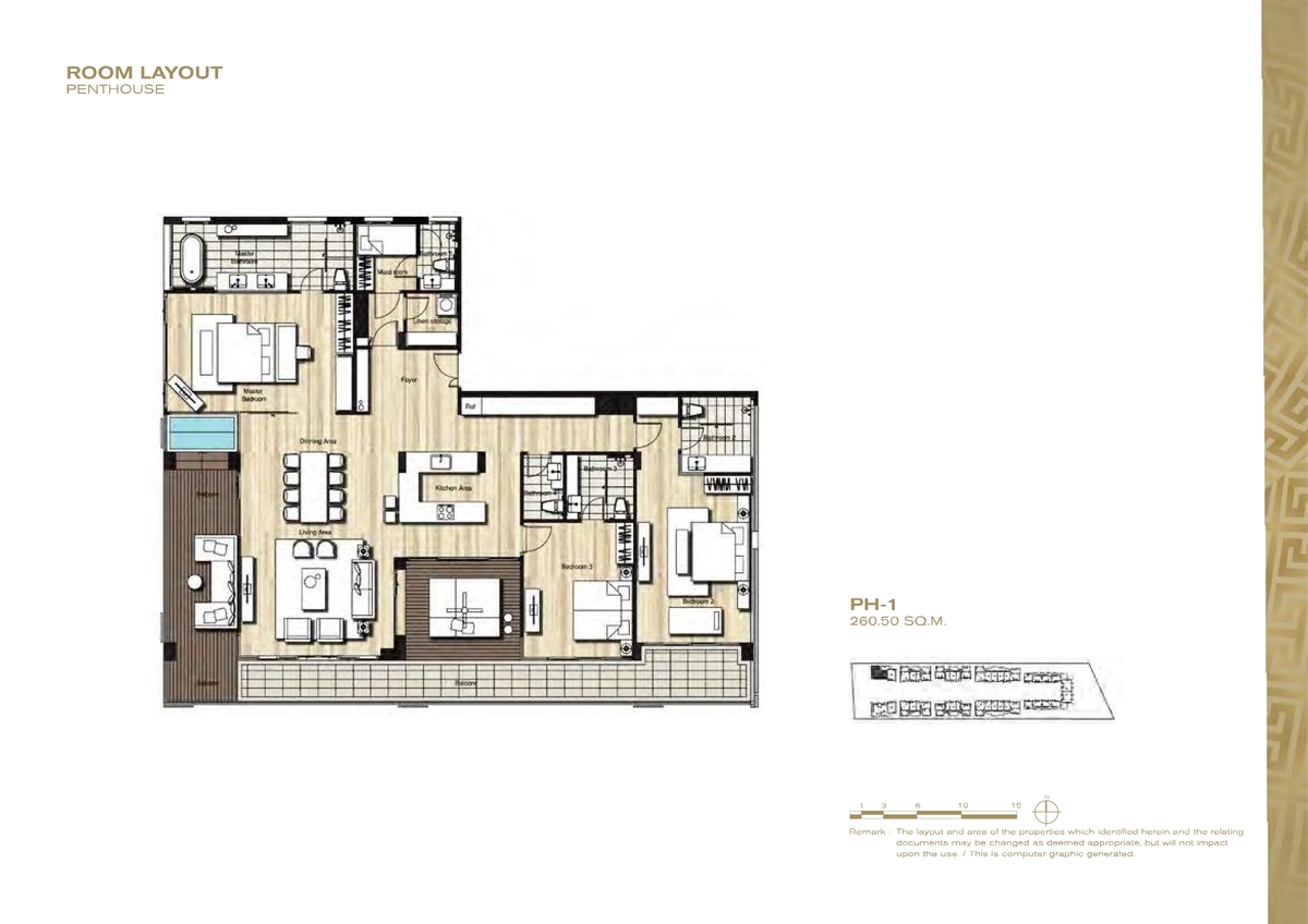 This intelligently designed 260.50 SQM penthouse maximizes livability, luxury, and tropical lifestyle integration. The layout's L-shaped configuration creates distinct zones for entertaining, relaxation, and service, while extensive glazing and outdoor access blur the boundaries between interior comfort and beachfront beauty. Perfect for discerning buyers seeking a sophisticated, single-level residence that combines Italian elegance, functional design, and the serene luxury of absolute beachfront living.