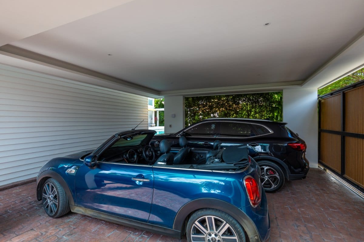 Set on 876.4 sqm of Chanote land, with a generous built-up area of 749.5 sqm across two floors, the home offers expansive living spaces designed for both comfort and entertaining. The villa features five spacious bedrooms and five bathrooms, complemented by a separate laundry room, covered parking for two vehicles, and a fully integrated smart home system.