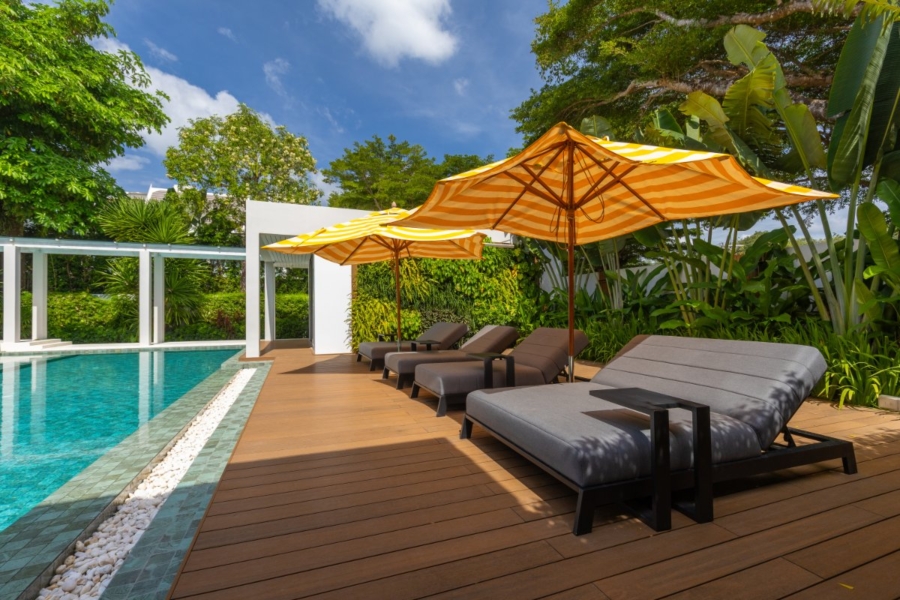 Positioned discreetly within The Park, just moments from the prestigious Laguna Phuket precinct, this impeccably re-engineered five-bedroom villa offers a rare blend of privacy, scale, and five-star living. With Bang Tao Beach less than five minutes away, the residence sits in one of Phuket’s most sought-after residential corridors—favored by international buyers, lifestyle investors, and Thai families alike.