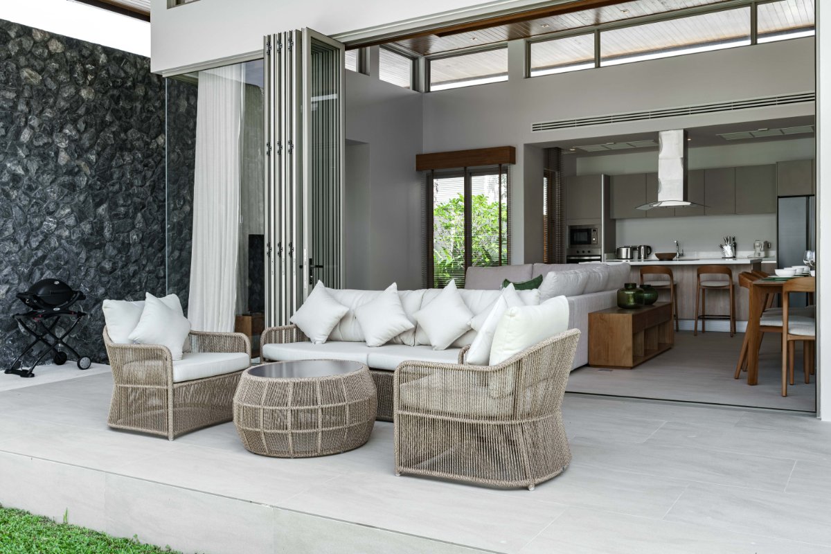 Spread across a 532.5 sqm land plot with 346 sqm of built-up space, the villa features an open-plan living and dining area that seamlessly blends with a beautifully landscaped tropical garden and a 4 x 9.75-meter private saltwater pool. The home boasts a modern tropical Asian design, natural ventilation, and abundant natural light.