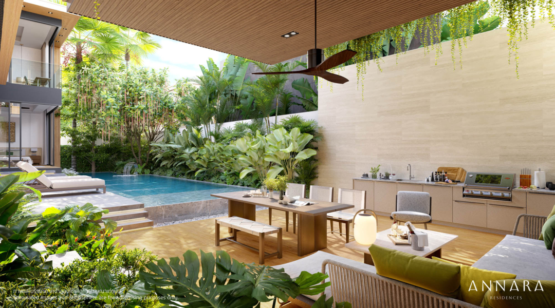Introducing Villa Nara, a thoughtfully designed 4-bedroom, 5-bathroom tropical pool villa located within the serene enclave of Annara Residences in Cherngtalay, Phuket. This elegant two-storey home embodies the essence of contemporary tropical living with refined comfort, smart technology, and seamless connection to nature.